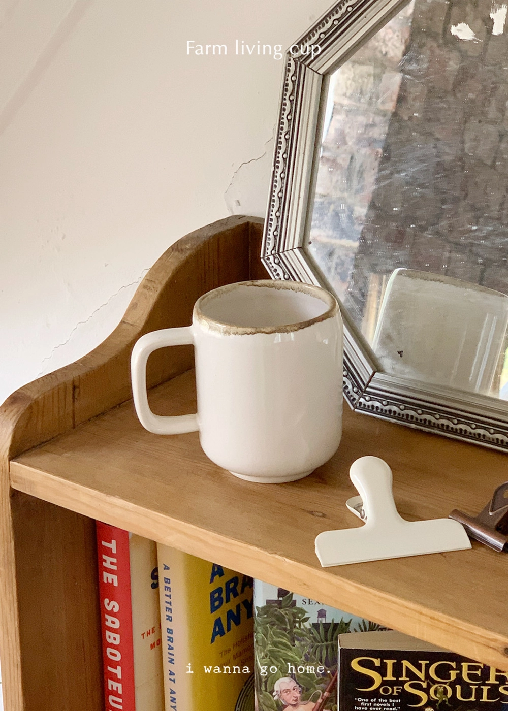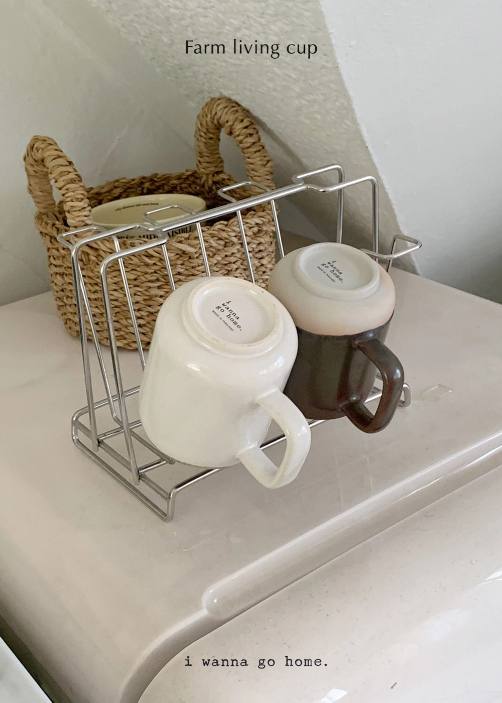 입구쪽이 살짝 모아지는 형태와 부드러운 곡선의 손잡이가 특징이며, 림 부분의 컬러가 포인트인 화이트, 은은한 투톤 광택의 러스틱 두가지 컬러가 준비되어 있습니다.