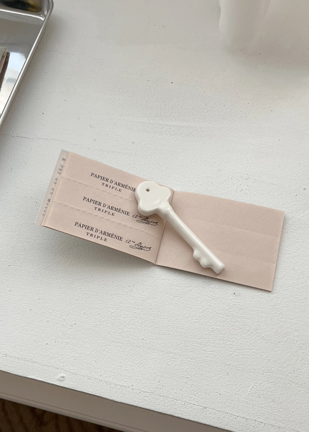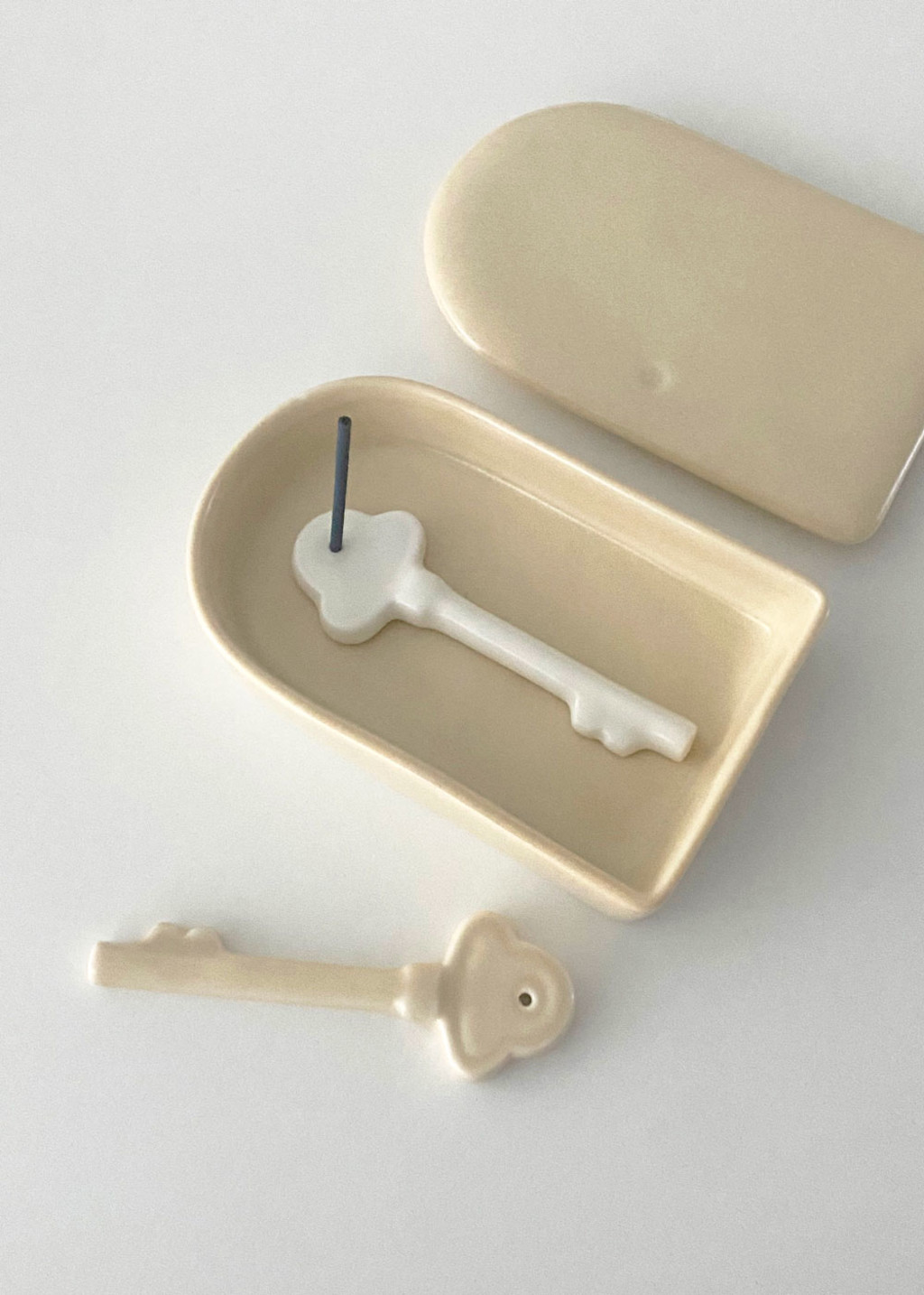 아이워너고홈에서 처음으로 소개해 드리는 열쇠 인센스 홀더 입니다. 클래식한 디테일이 매력적인 열쇠 모양의 홀더로 아담한 사이즈로 제작되어 협탁이나 거실장에 오브제로 놓아도 근사합니다. 작고 얇은 스틱 인센스에 사용할 수 있으며 깨끗한 느낌의 아이보리와 부드러운 크림 컬러 중 선택할 수 있습니다.
