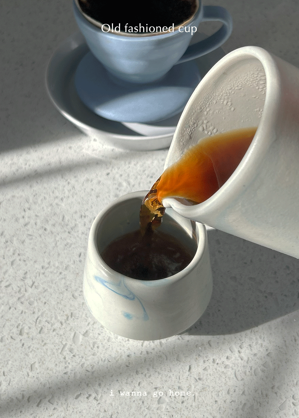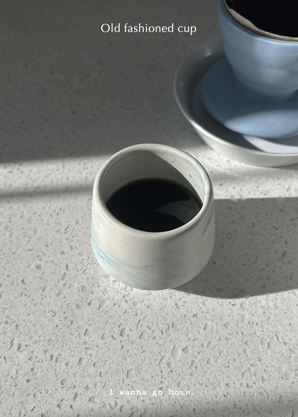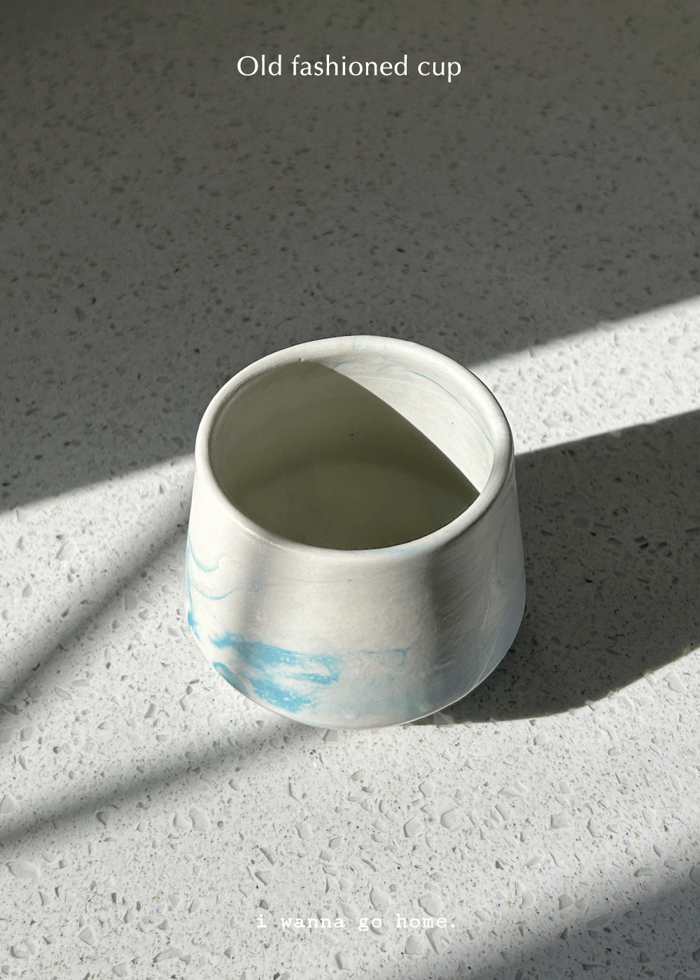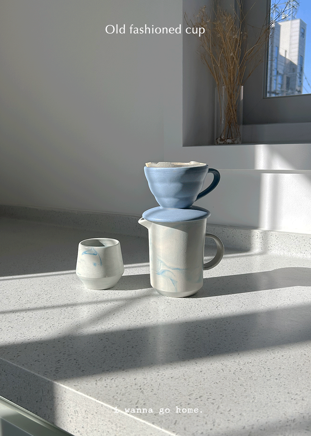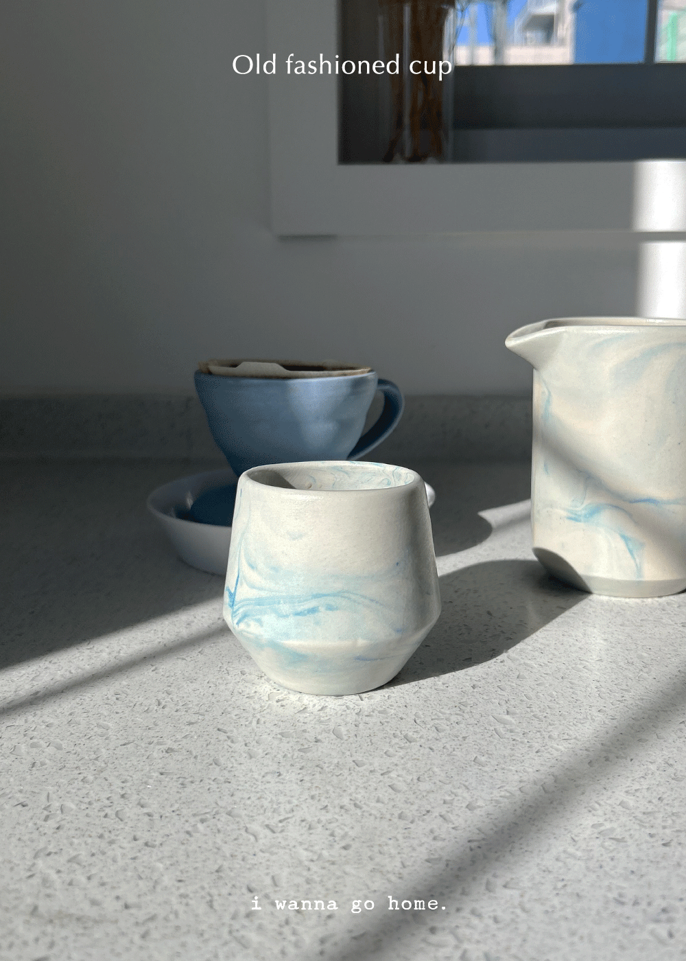 부서지는 잔물결의 모양을 닮은 마블 블루 컬러의 올드패션드컵 입니다.
